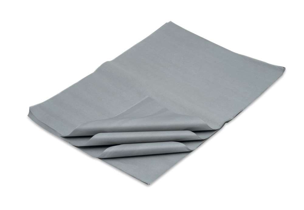 Stonowany odcień szarości nadaje opakowaniom nowoczesny, minimalistyczny charakter. Gramatura ok. 20 g/m² pozwala łatwo dopasować arkusz do kształtu produktu, a gładka struktura zapewnia schludne wykończenie.