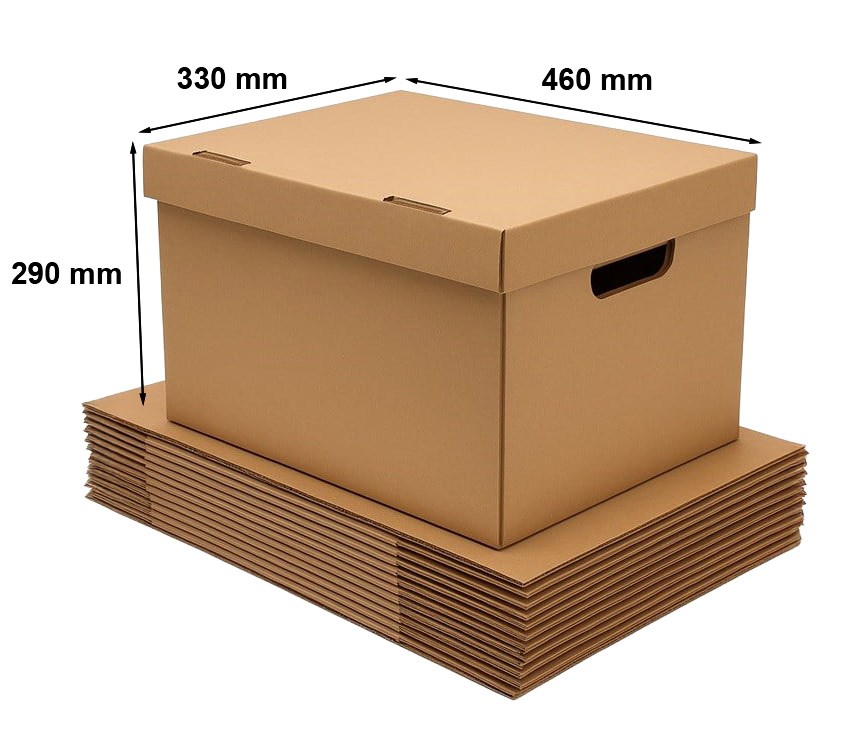 Karton wykrojnikowy o wymiarach 460x330x290 mm to praktyczne i wygodne rozwiązanie, które sprawdza się idealnie podczas przeprowadzki. Wyposażony w automatyczne dno, nie wymaga taśmy klejącej – wystarczy go rozłożyć i jest gotowy do użycia. Dzięki solidnej tekturze 3-warstwowej zapewnia bezpieczny transport książek, dokumentów, ubrań i innych rzeczy osobistych.
