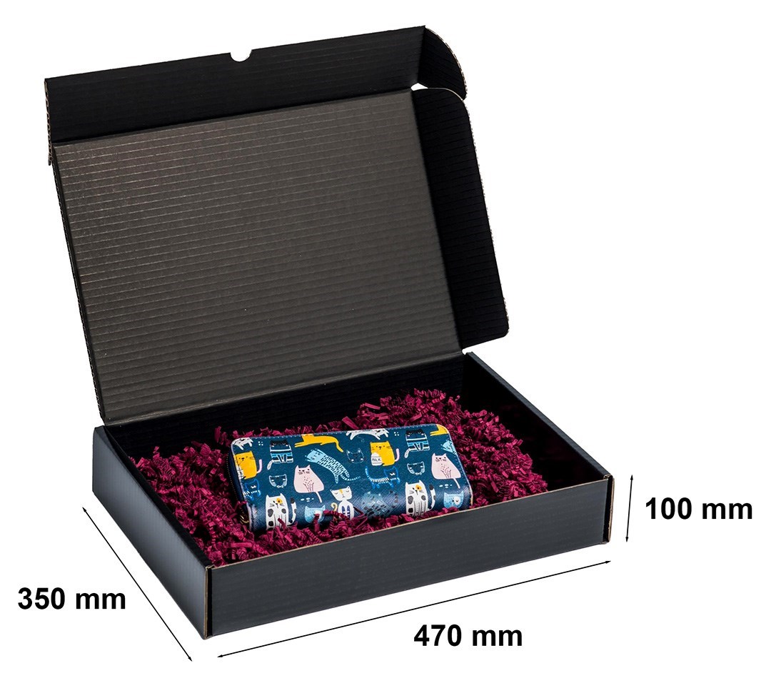 Czarny karton wykrojnikowy o wymiarach 470×350×100 mm przeznaczony jest do pakowania produktów wymagających estetycznej i stabilnej oprawy. Konstrukcja fasonowa umożliwia szybkie składanie bez użycia taśmy, co usprawnia proces pakowania. Tektura falista 3-warstwowa zapewnia odpowiednią sztywność oraz ochronę zawartości podczas transportu i magazynowania. Czarny kolor zewnętrzny podkreśla profesjonalny charakter przesyłki i dobrze komponuje się z produktami premium.