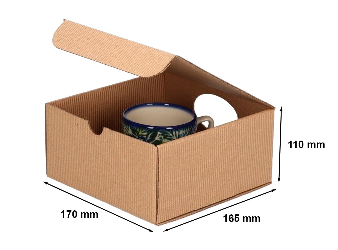 Praktyczne pudełko o wymiarach 170×165×110 mm to solidne rozwiązanie do pakowania filiżanek i innych delikatnych produktów. Dzięki przemyślanej konstrukcji z tektury falistej chroni zawartość przed uszkodzeniami w trakcie transportu i przechowywania. Wykonane z 4-warstwowej tektury, jest odporne na odkształcenia i wytrzymałe, a jednocześnie lekkie. To uniwersalne opakowanie doskonale sprawdzi się w gastronomii, handlu detalicznym i wysyłkach e-commerce.