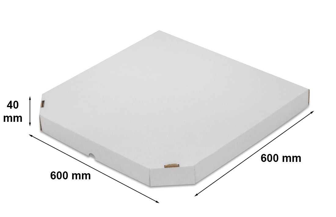 Kartonowe pudełko na pizzę w formacie 600 x 600 x 40 mm to największe opakowanie, jakie możemy zaoferować. Z powodzeniem sprawdzi się do zapakowania pizz o największych rozmiarach.