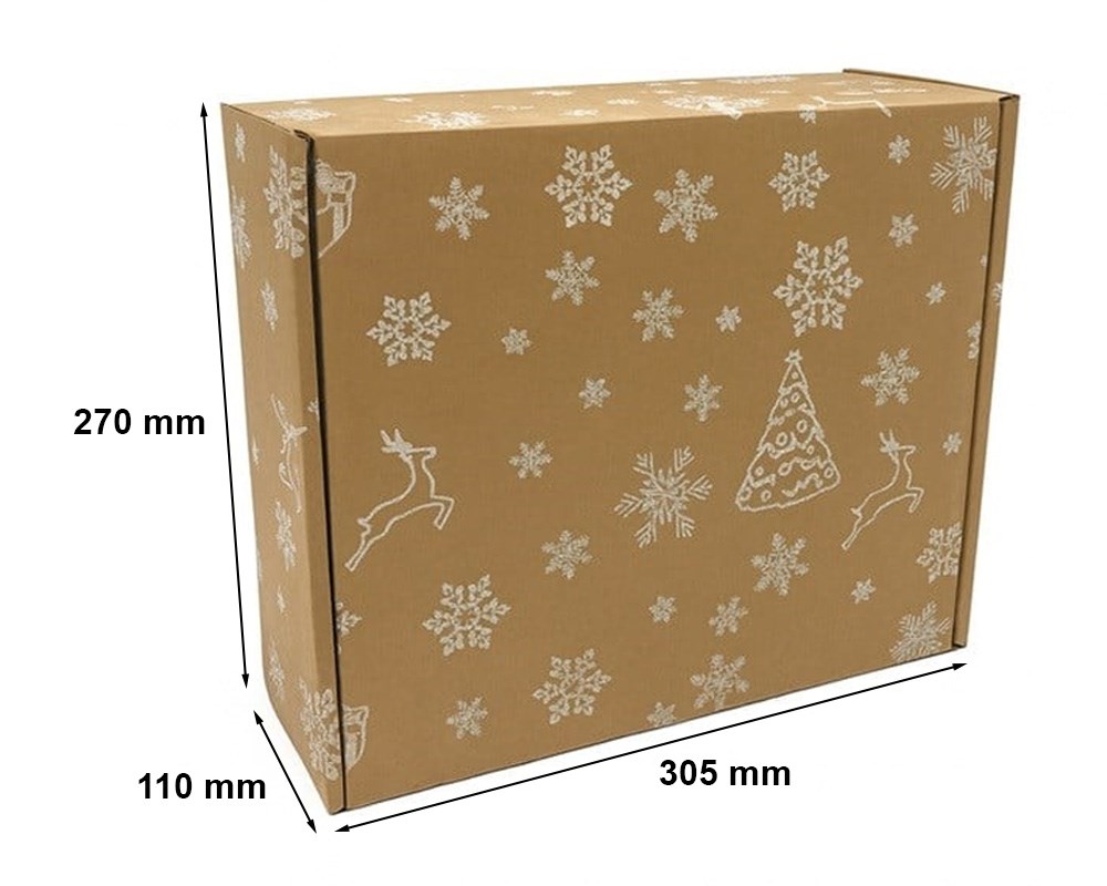 Karton wykrojnikowy świąteczny 305x270x110 mm Renifery Śnieżynki Choinki