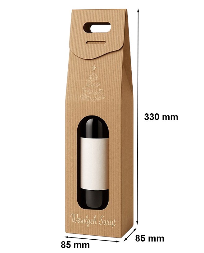 Karton Świąteczny na wino znajdzie swoje zastosowanie, nie tylko jako opakowanie prezentowe, ale także jako zabezpieczenie podczas przechowywania i transportu. Dzięki praktycznemu uchwytowi można go łatwo przenosić, zapewniając komfort użytkowania i spektakularną prezentację daru.