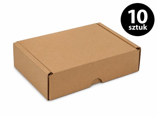 Zestaw 10 sztuk kartonów wykrojnikowych o wymiarach 180 × 130 × 80 mm przeznaczony do pakowania i transportu drobnych produktów.