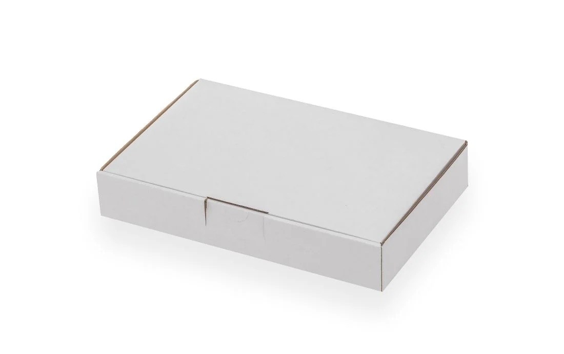 Karton wykrojnikowy o wymiarach 200 × 150 × 50 mm w kolorze białym to opakowanie przeznaczone do pakowania i wysyłki produktów o niewielkiej wysokości.