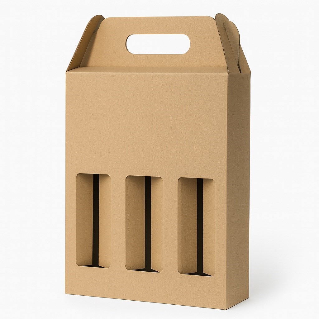 Praktyczny karton wykrojnikowy 210x68x258 mm zaprojektowany specjalnie do pakowania oraz wygodnego przenoszenia 3 butelek piwa. Wzmocniona konstrukcja wykrojnikowa gwarantuje szybkie składanie bez użycia taśmy, a uchwyt transportowy znacząco ułatwia przenoszenie zestawu. Idealny dla browarów rzemieślniczych, sklepów oraz zestawów upominkowych. Opakowanie zawiera 10 sztuk pudełek.