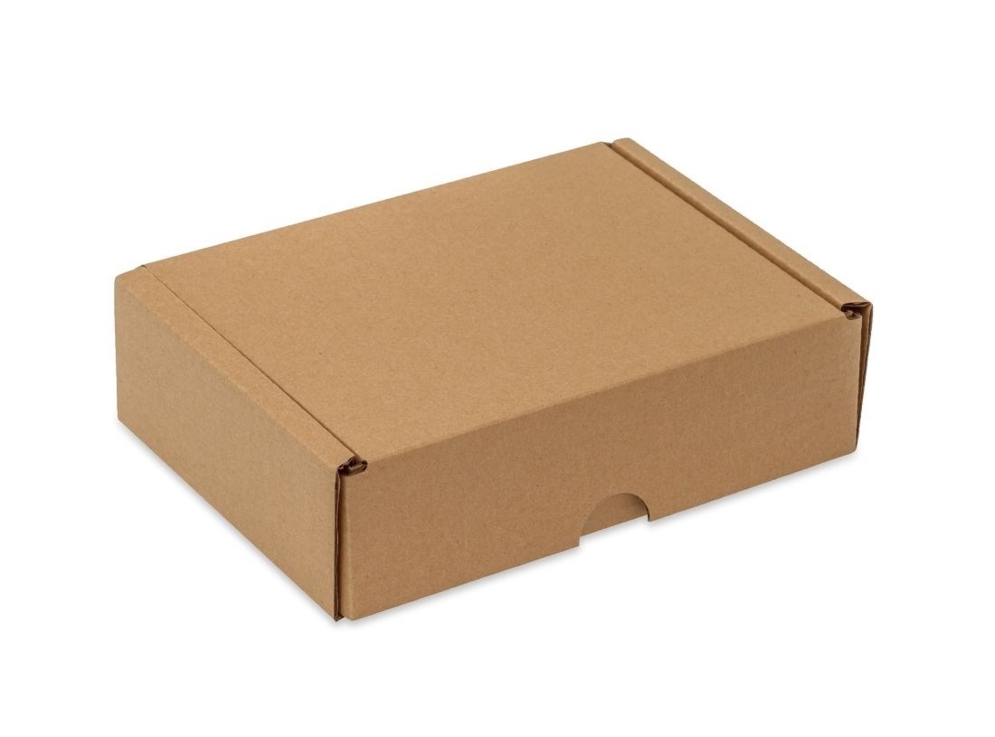 Wykonany z 3-warstwowej tektury falistej (fala E) o gramaturze 450 g/m² zapewnia wysoką sztywność oraz skuteczną ochronę zawartości podczas transportu.