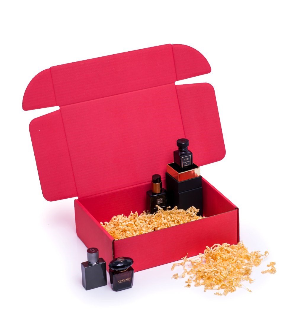 Wytrzymałe pudełko ozdobne z tektury falistej w intensywnym kolorze czerwonym (Pantone 185 C) to eleganckie rozwiązanie do pakowania produktów premium, prezentów i zestawów upominkowych. Konstrukcja FEFCO F427 umożliwia szybkie i wygodne składanie bez użycia taśmy klejącej, a sztywna tektura skutecznie chroni zawartość w trakcie transportu i magazynowania.