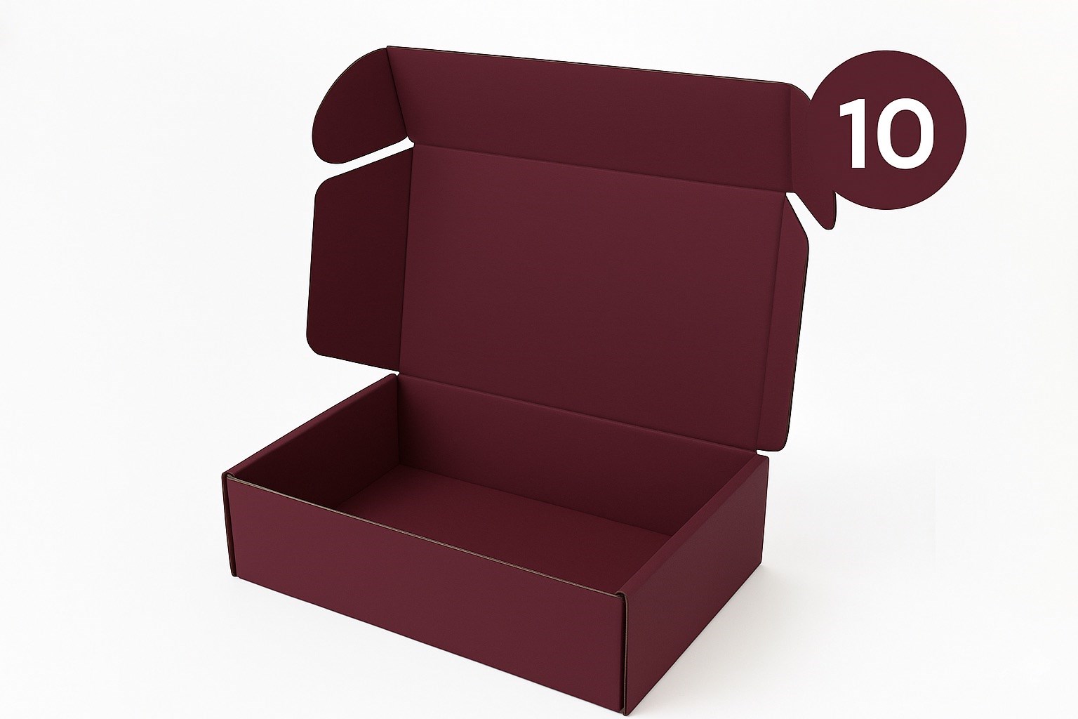 Karton wykrojnikowy 330 × 250 × 100 mm – bordowy (Pantone 209), pakiet 10 sztuk