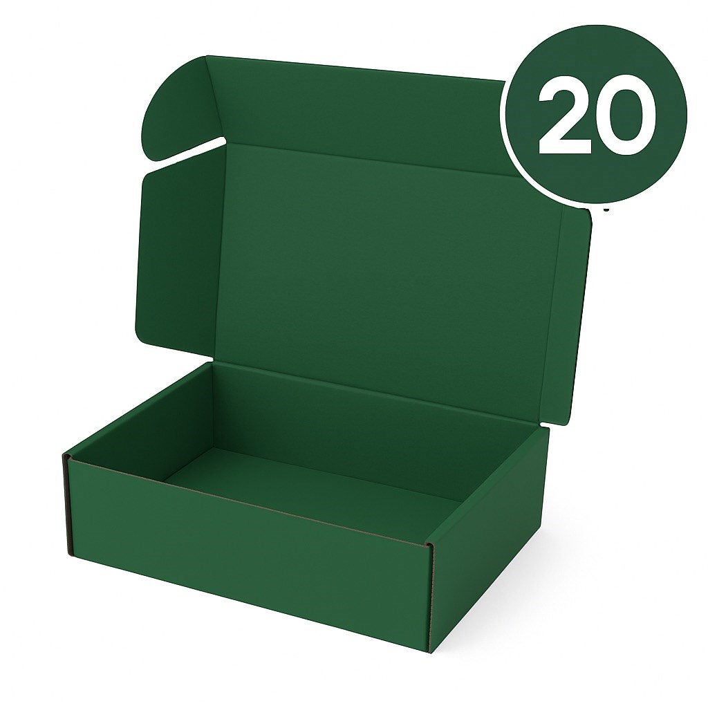 Karton wykrojnikowy 330 × 250 × 100 mm – leśny zielony (Pantone 349-10), pakiet 20 sztuk