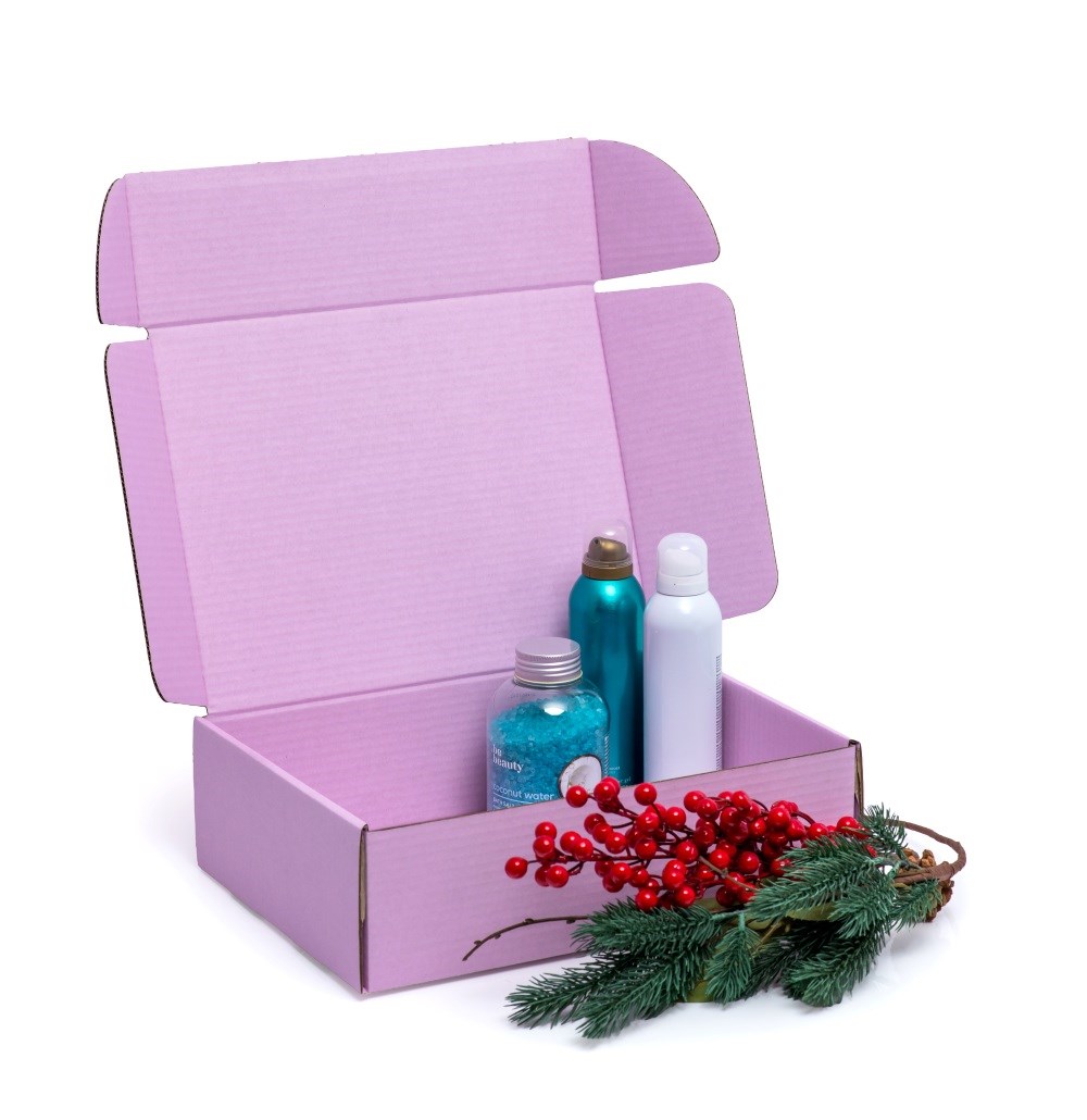 Solidny karton wykrojnikowy w delikatnym kolorze liliowym to funkcjonalne i estetyczne rozwiązanie do pakowania oraz wysyłki różnego rodzaju produktów. Konstrukcja FEFCO 427 zapewnia szybkie składanie bez potrzeby użycia taśmy klejącej, a tektura o gramaturze 400 g/m² gwarantuje trwałość i stabilność opakowania. Subtelny odcień Pantone 531 nadaje paczkom lekkości i świeżości, doskonale sprawdzając się w branży e-commerce oraz handlu detalicznym.