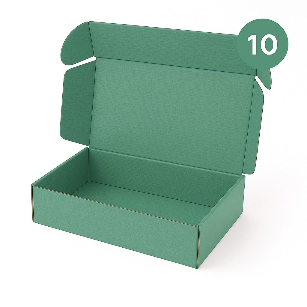 Karton wykrojnikowy 330 × 250 × 100 mm – szałwiowy (Pantone 5565), pakiet 10 sztuk