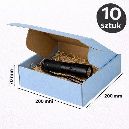 Niebieski karton wykrojnikowy 200×200×70 mm łączy elegancki wygląd z funkcjonalnością transportową. Intensywny kolor podkreśla wyjątkowy charakter opakowania i buduje rozpoznawalność marki. Konstrukcja Fefco 426 zapewnia estetyczną bryłę bez widocznych elementów klejenia. To rozwiązanie odpowiednie dla marek premium oraz sprzedaży online.