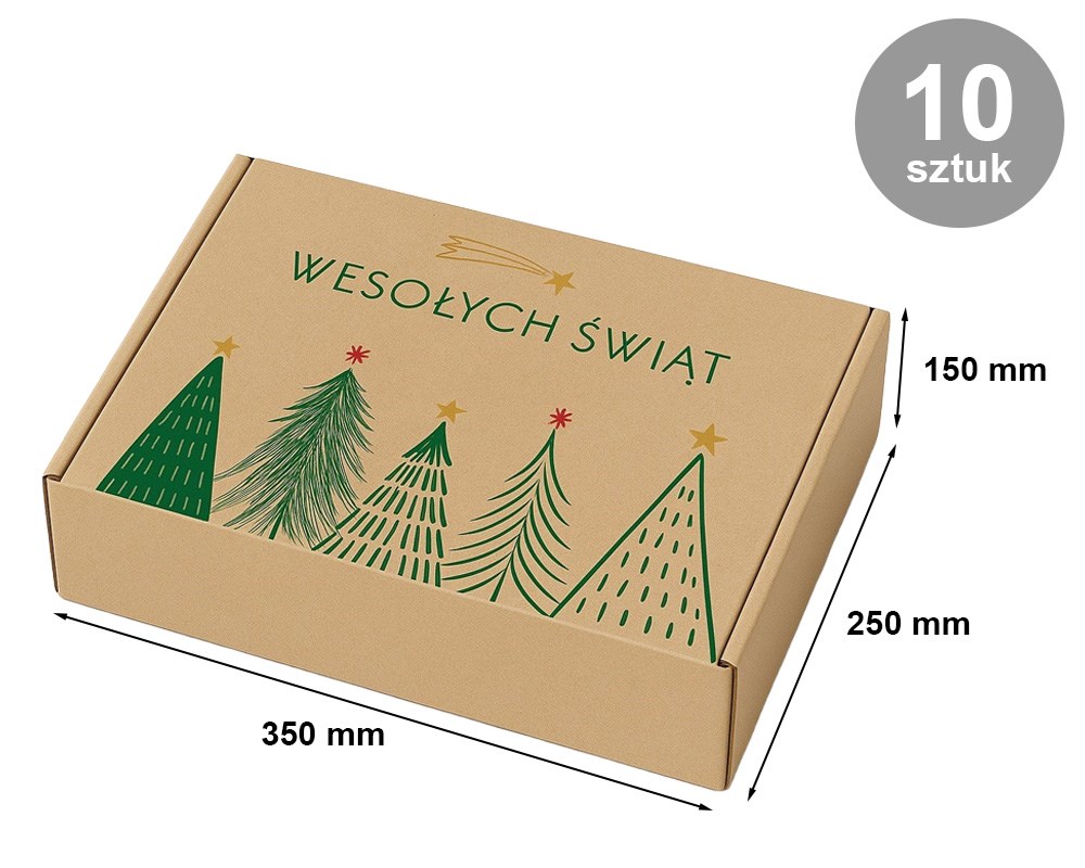 Karton wykrojnikowy świąteczny 350x250x150 mm Zielone Choinki – pakiet 10 sztuk