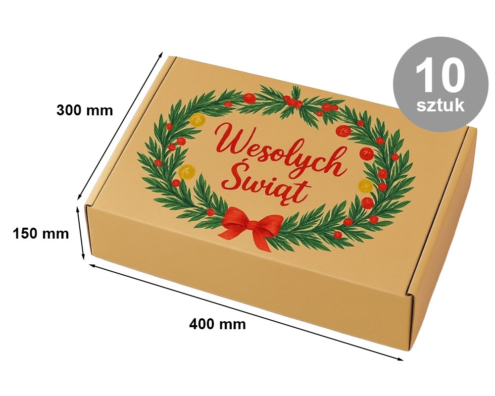 Karton wykrojnikowy świąteczny 400x300x150 mm „Wesołych Świąt” – pakiet 10 sztuk