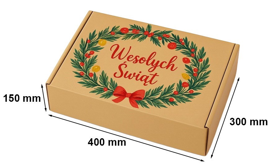 Karton wykrojnikowy świąteczny 400x300x150 mm "Wesołych Świąt"