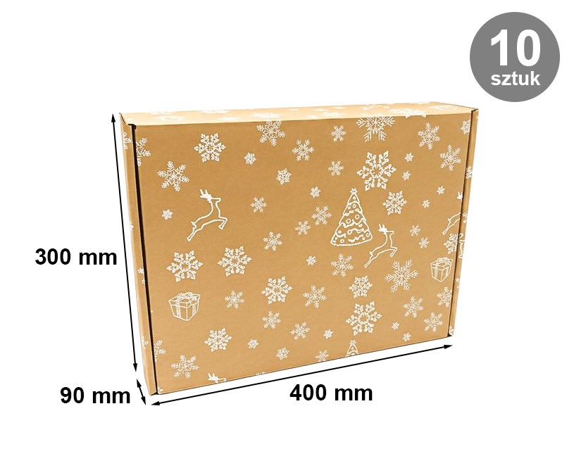Karton wykrojnikowy świąteczny 400x300x90 mm "Wesołych Świąt" Renifery Śnieżynki – pakiet 10 sztuk