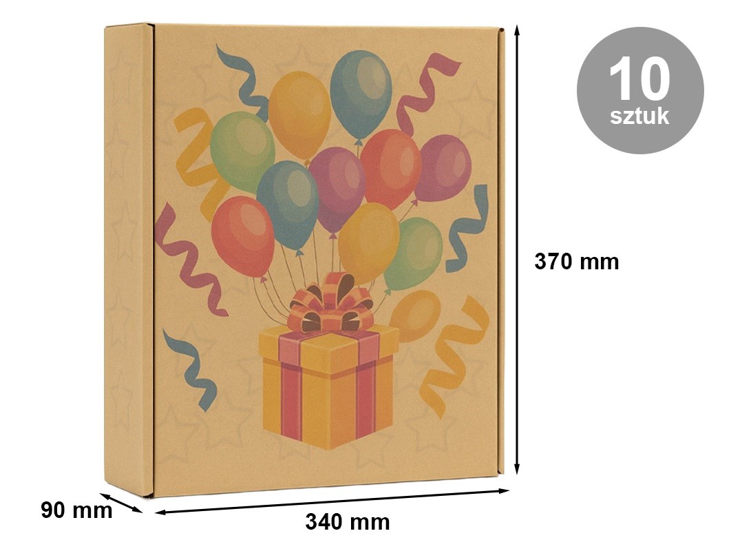 Karton fasonowy urodzinowy 370x340x90 mm – zestaw 10 sztuk
