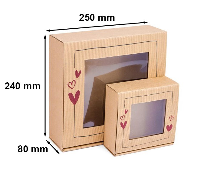 Wymiary: 250 x 240 x 80 mmKolor: Naturalny kraft z subtelnym motywem ramki z serduszkami
