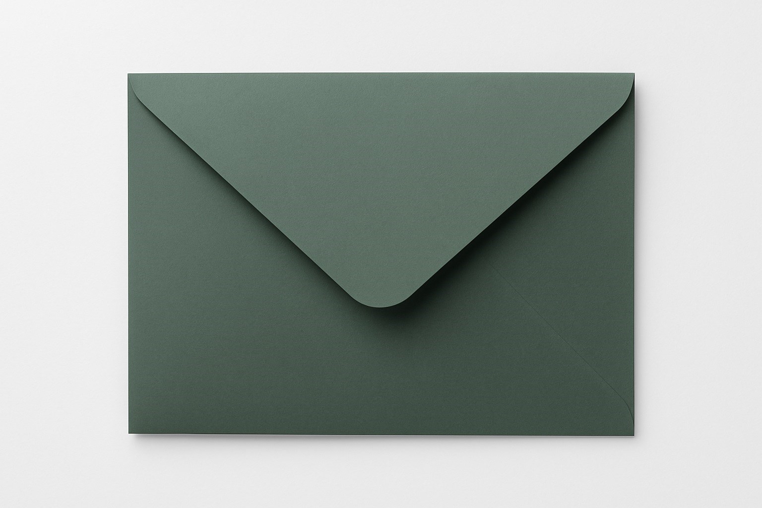 Koperty B6 w głębokim odcieniu butelkowej zieleni to wyrafinowany wybór dla eleganckiej i profesjonalnej korespondencji. Inspirowane kolorem Pantone 5535C, doskonale podkreślają formalny charakter zaproszeń, kartek i listów. Wykonane z trwałego papieru offsetowego 120g z tradycyjnym zamknięciem typu wet – łączą estetykę z funkcjonalnością.