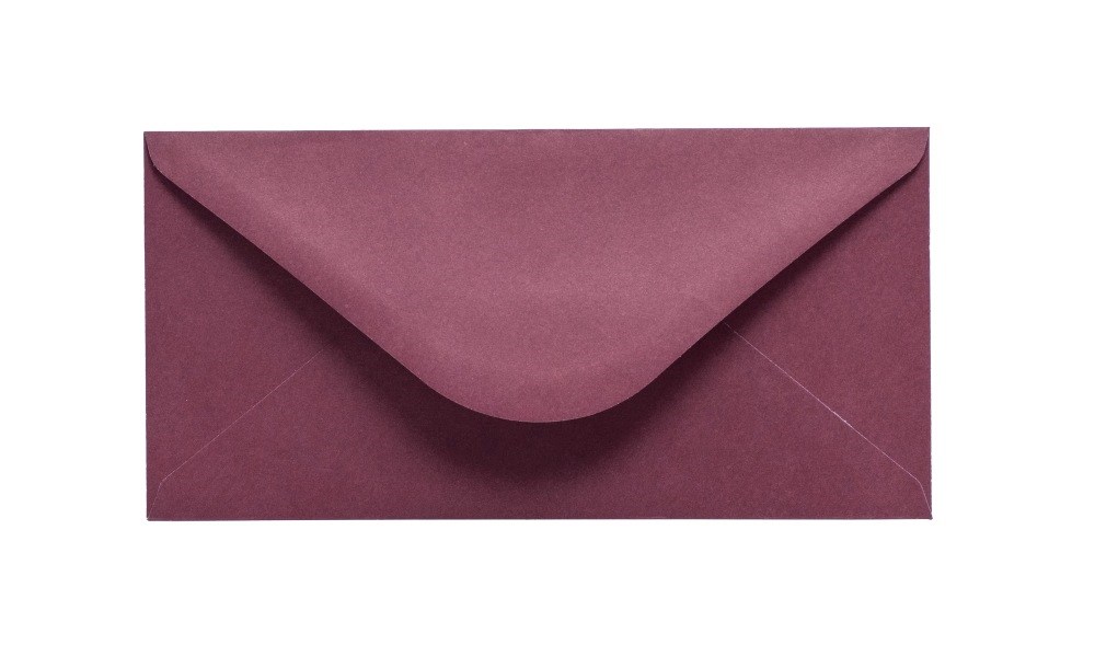 Koperta DL z zamknięciem na mokro, Bordowy Burgundowy, 120g, 110x220 mm – 10 sztuk