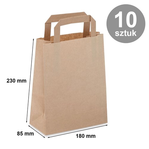 Pakiet Torba papierowa 180x85x230 Brązowa z uchwytem płaskim 10 szt.
