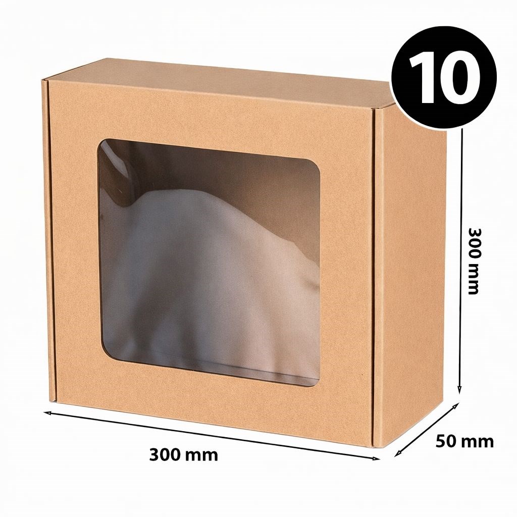 Pudełko fasonowe z okienkiem EKO brązowe 300×300×50 mm