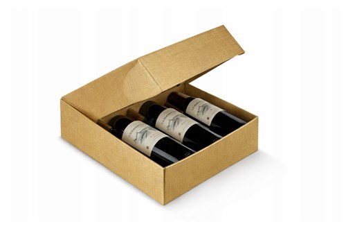 Pudełko na wino w kolorze złotym zmieści 3 wina. Pasuje ono do większości obecnych na rynku opakowań alkoholi. Należy podkreślić, że produkt może być używany wielokrotnie bez pogorszenia jego funkcji ochronnych, bez uszczerbku na jego wyglądzie i użyteczności. Zostało wykonane z wysokogatunkowej 3-warstwowej tektury. Dlatego też wyróżnia się najwyższą jakością. Wymiary tego pudełka na wino to 340 x 280 x 90 mm.