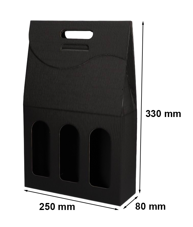 Pudełko karbowane czarne na 3 wina 250x80x330mm