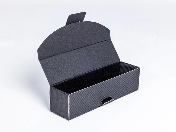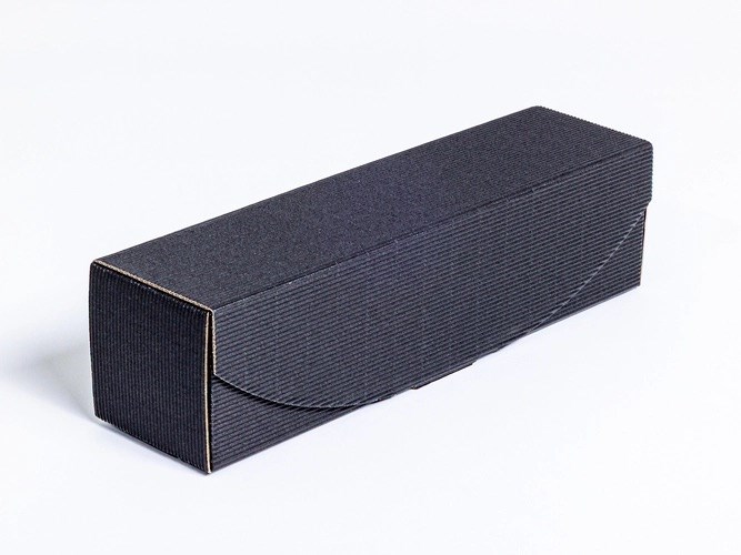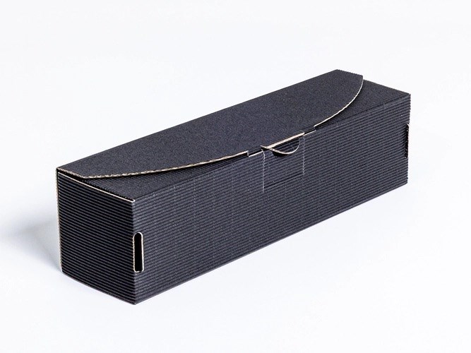 Trwały karton ozdobny na 1 butelkę wina o wymiarach 318 × 85 × 87 mm został wykonany z 4-warstwowej tektury falistej (fala FE, 450 g/m²), co gwarantuje wysoką odporność i stabilność konstrukcji. Karton składany ręcznie doskonale zabezpiecza zawartość przed uszkodzeniem w transporcie, a czarne wykończenie nadaje mu elegancki i uniwersalny wygląd.
