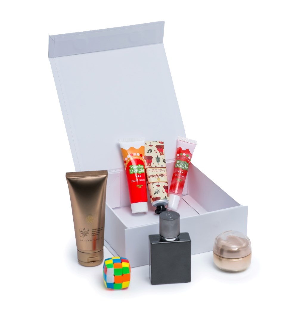 - Elegancki biały kolor, który nadaje pudełku prostą, ale luksusową estetykę.