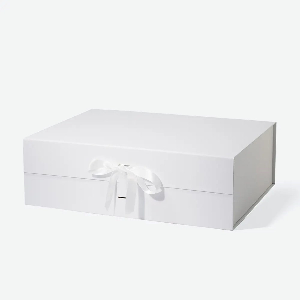 Pudełko magnetyczne B4 białe z wstążką 410×305×130 mm