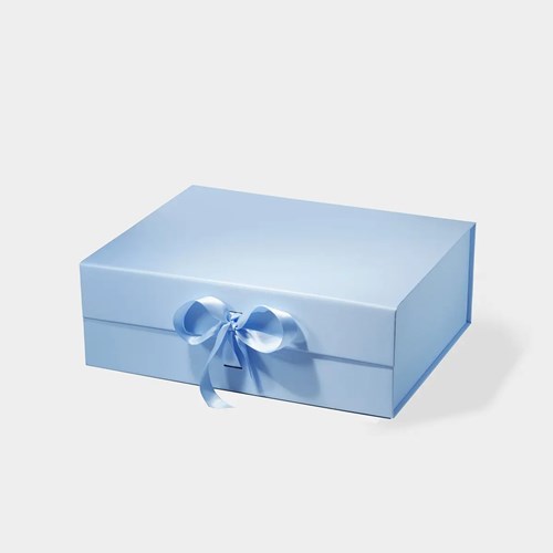 Pudełko prezentowe magnetyczne A4 błękitne z wstążką 330×255×115 mm