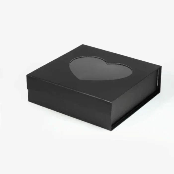 Pudełko magnetyczne kwadratowe A5 czarne z okienkiem w kształcie serca 235×235×80 mm
