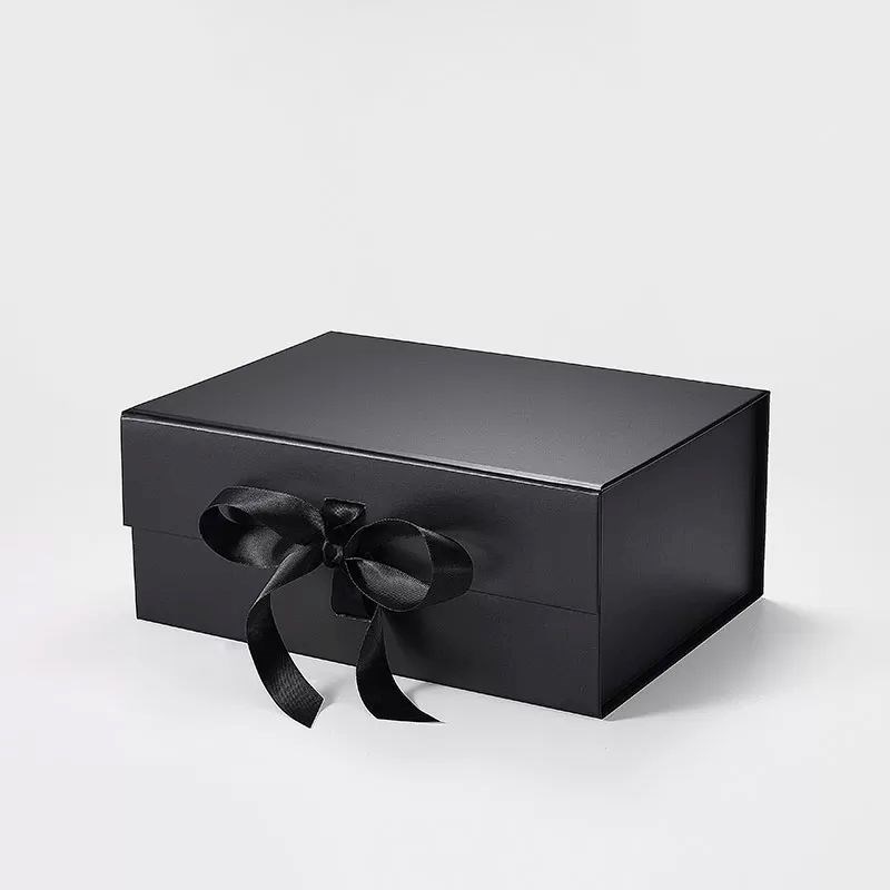 Pudełko magnetyczne A5 głębokie czarne z wstążką 235×170×101 mm