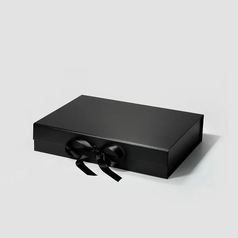 Pudełko prezentowe magnetyczne A4 czarne z wstążką 330×255×70 mm