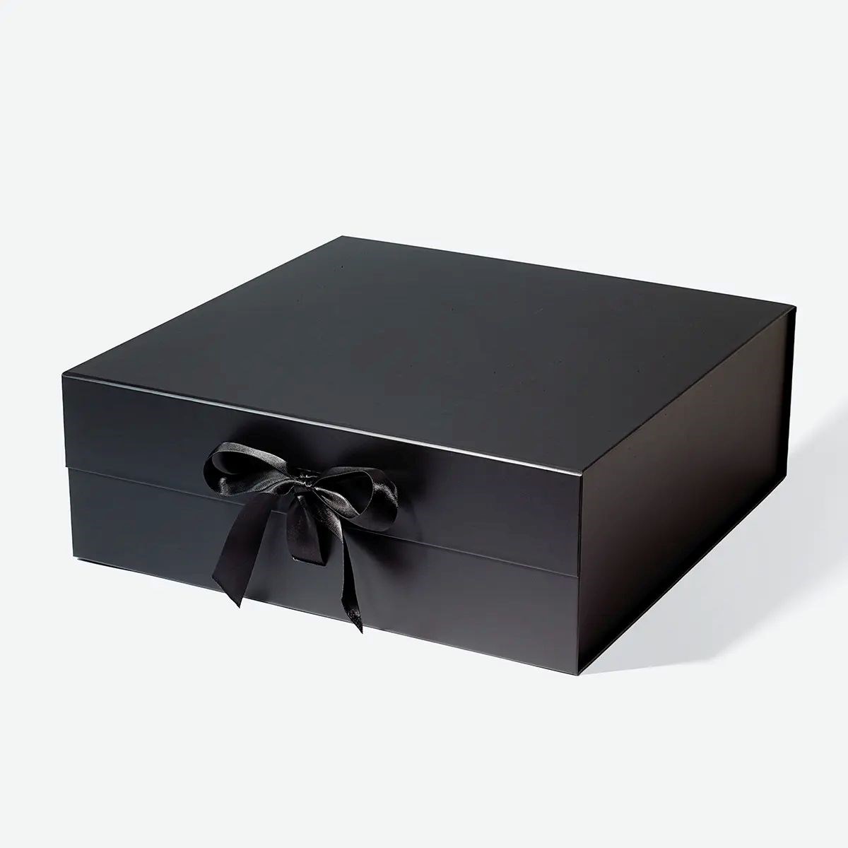 Pudełko magnetyczne kwadratowe czarne z wstążką 350×350×125 mm