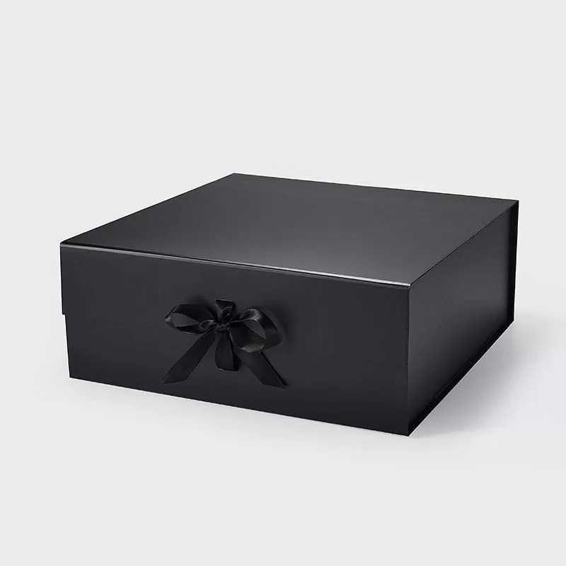 Pudełko magnetyczne duże kwadratowe czarne z wstążką 380×380×150 mm