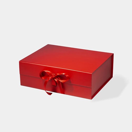Pudełko prezentowe magnetyczne A4 czerwone z wstążką 330×255×115 mm