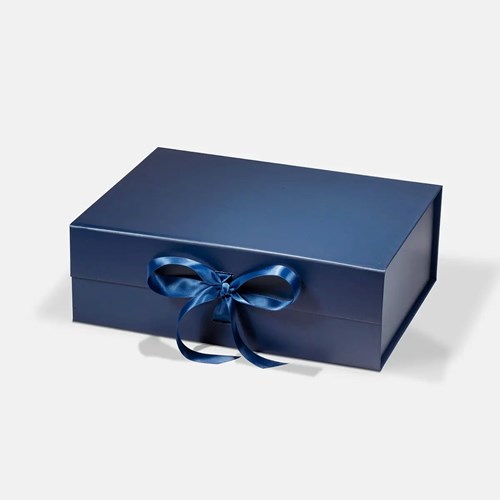 Pudełko prezentowe magnetyczne średnie granatowe z wstążką 280×210×95 mm