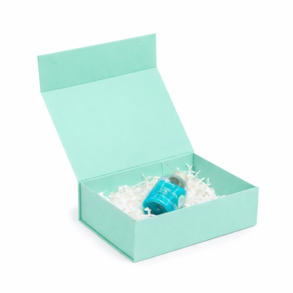 Pudełko magnetyczne o wymiarach 350×250×100 mm przeznaczone jest do pakowania produktów oraz zestawów wymagających stabilnej i estetycznej oprawy. Sztywna, lita tektura o gramaturze 850 g/m² zapewnia ochronę zawartości podczas transportu i przechowywania. Składana konstrukcja ułatwia magazynowanie pudełek przed użyciem oraz sprawne przygotowanie opakowania. Miętowy kolor Pantone 337C nadaje całości świeży i uporządkowany charakter.
