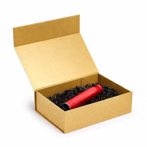 Pudełko magnetyczne o wymiarach 350×250×100 mm przeznaczone jest do estetycznego i bezpiecznego pakowania produktów wymagających solidnej oprawy. Sztywna, lita tektura o wysokiej gramaturze zapewnia stabilność konstrukcji oraz ochronę zawartości. Magnetyczne zamknięcie umożliwia wygodne użytkowanie i wielokrotne otwieranie. Złoty kolor nadaje opakowaniu elegancki, reprezentacyjny charakter.