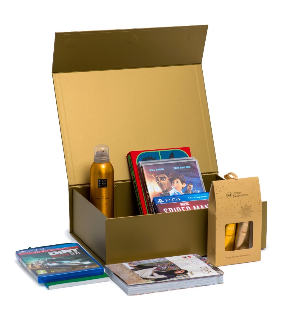- Stylowy design. Złoty kolor nadaje pudełku luksusowy wygląd, idealny na specjalne okazje.