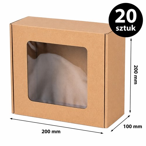 Pudełko Ozdobne EKO Brązowe z Okienkiem 220 × 205 × 104 mm (20 sztuk) – karton prezentowy, opakowanie z oknem