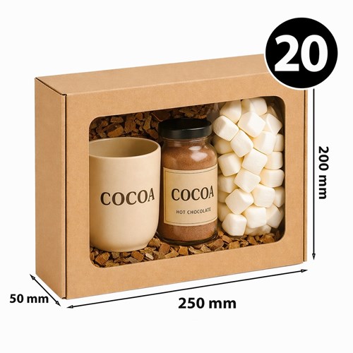 Pudełko Ozdobne EKO Brązowe z Okienkiem 250 × 200 × 50 mm (20 sztuk) – karton prezentowy, opakowanie z oknem