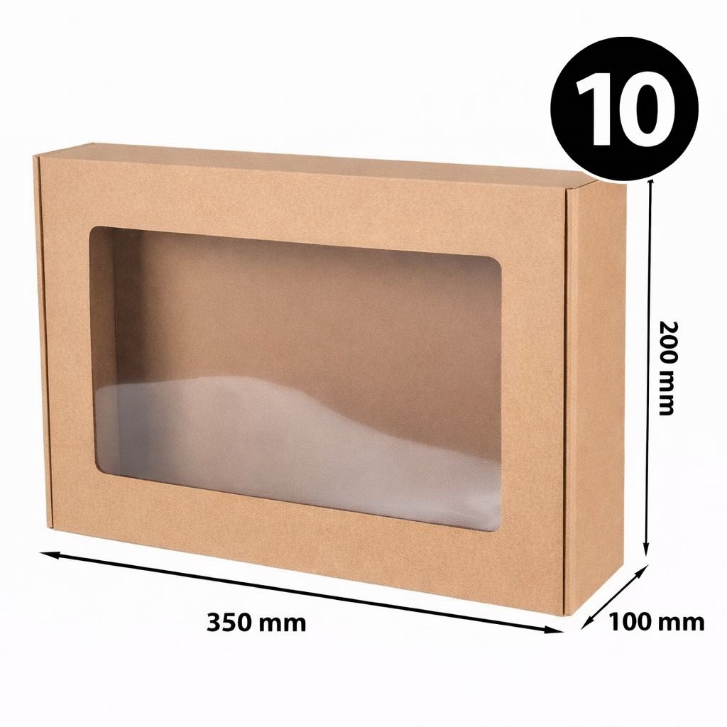 Pudełko ozdobne z okienkiem EKO brąz 350×200×100 mm – pakiet 10 sztuk