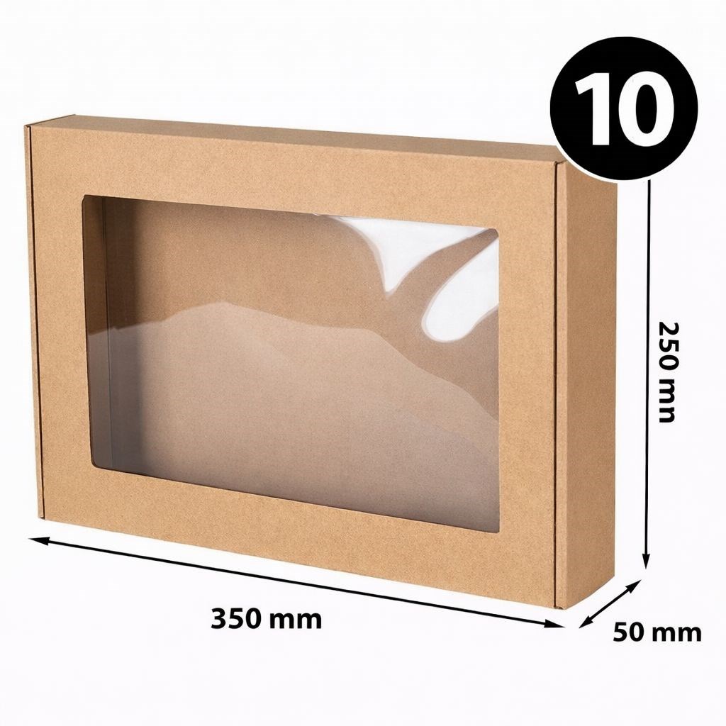 Pudełko ozdobne z okienkiem EKO brąz 350×250×50 mm – pakiet 10 sztuk