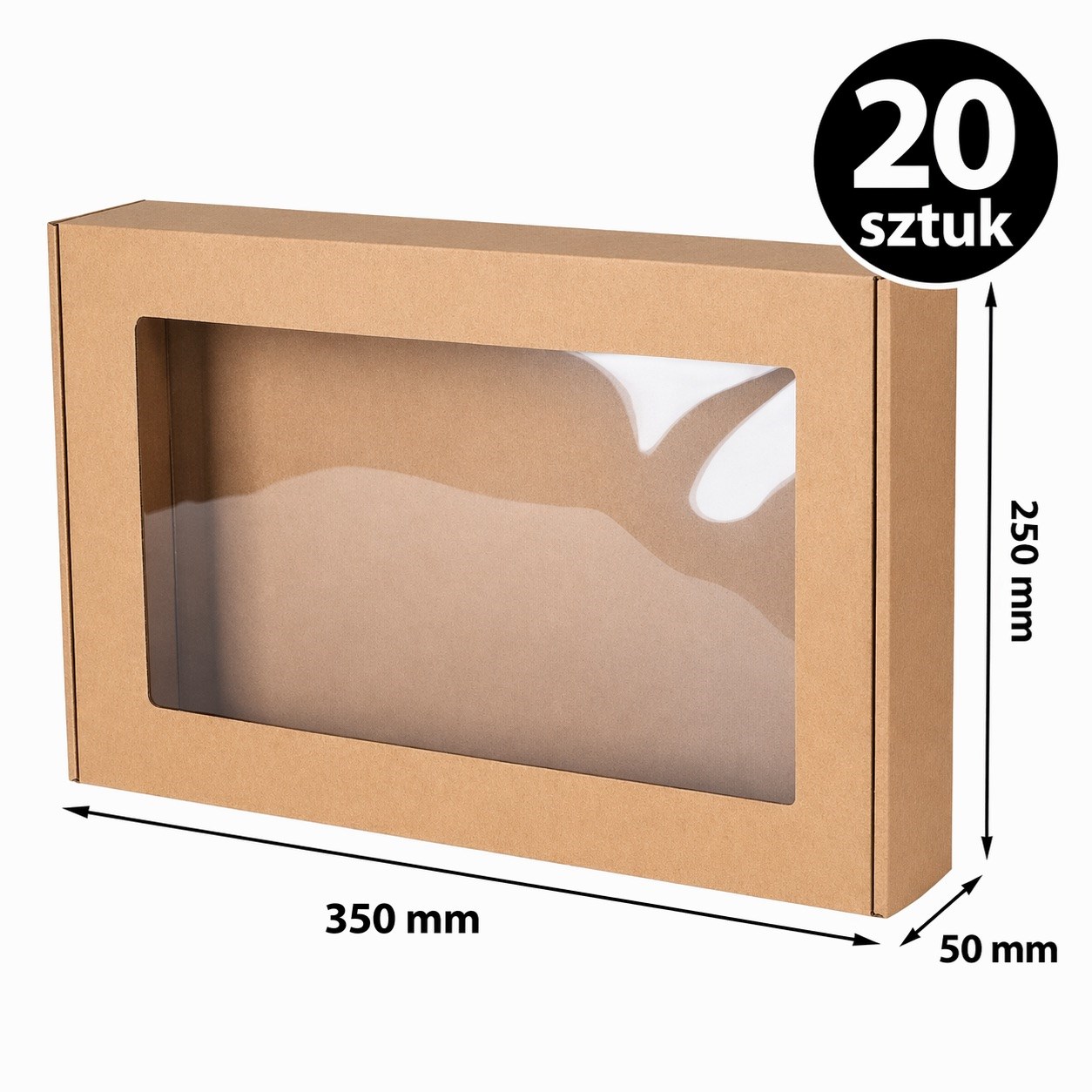 Pudełko Ozdobne EKO Brązowe z Okienkiem 350 × 250 × 50 mm (20 sztuk) – karton prezentowy, opakowanie z oknem