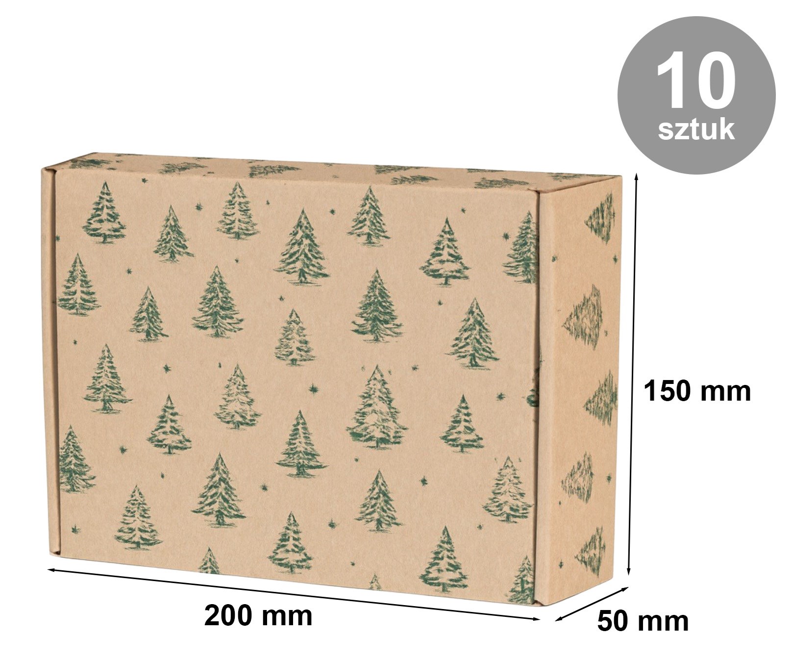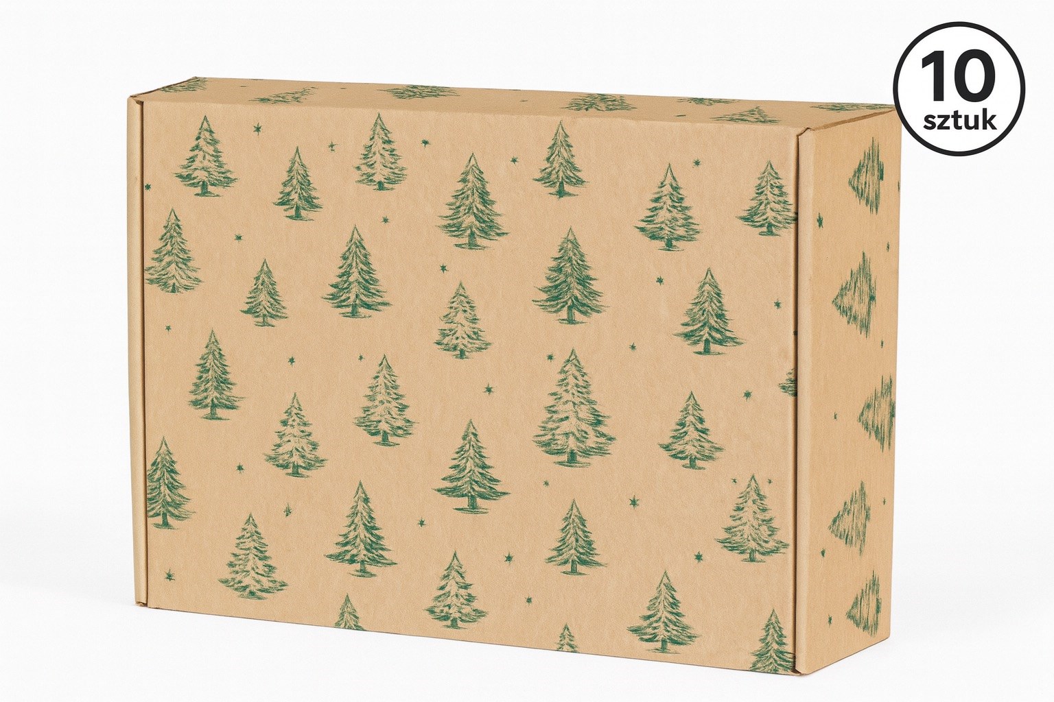 Pudełko fasonowe 200x150x50 mm z nadrukiem choinki „ŚWIĘTA” – pakiet 10 sztuk
