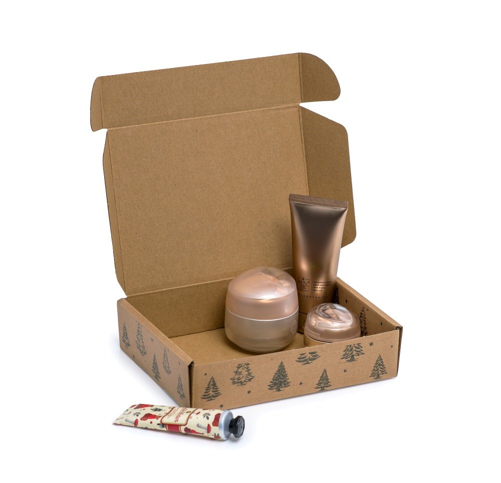 Wprowadź świąteczną atmosferę do swoich przesyłek i prezentów dzięki eleganckiemu pudełku fasonowemu w rozmiarze 200 × 150 × 50 mm. Brązowa tektura ozdobiona nadrukiem choinki i motywem „ŚWIĘTA” sprawia, że opakowanie staje się nie tylko praktyczne, ale i wyjątkowo estetyczne.